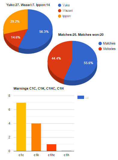 The software saves how many yuko, waza-ari, ippon, warnings, places, results, matches, events,han-tei, bye, flags in any tournament the competitor has had... and more, more things